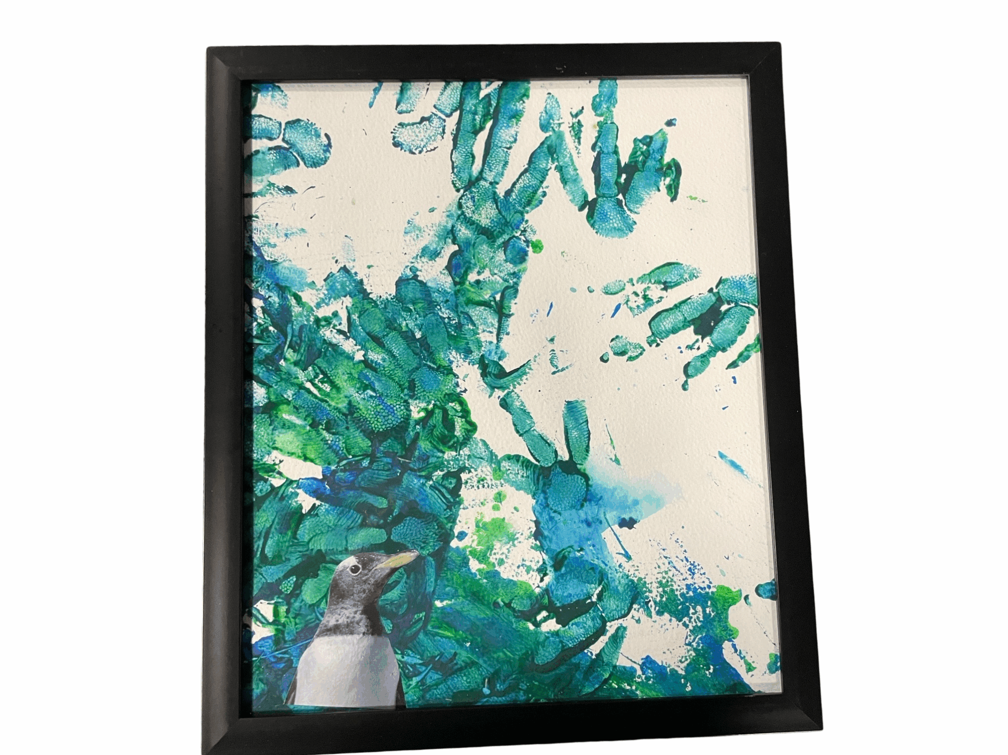 Own a one-of-a-kind piece of Penguin Art and support gentoo penguin conservation! This medium-sized framed print (280mm x 320mm) showcases artwork created by our gentoo penguins as part of their enrichment activities. Using “penguin-friendly” paints, our penguins waddle, splash, and interact with the canvas, creating unique and vibrant pieces of art.