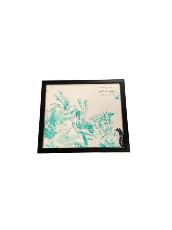 Own a unique framed Penguin Art piece (280mm x 320mm), handmade by our gentoo penguins as part of their enrichment activities. A perfect gift for penguin lovers!
